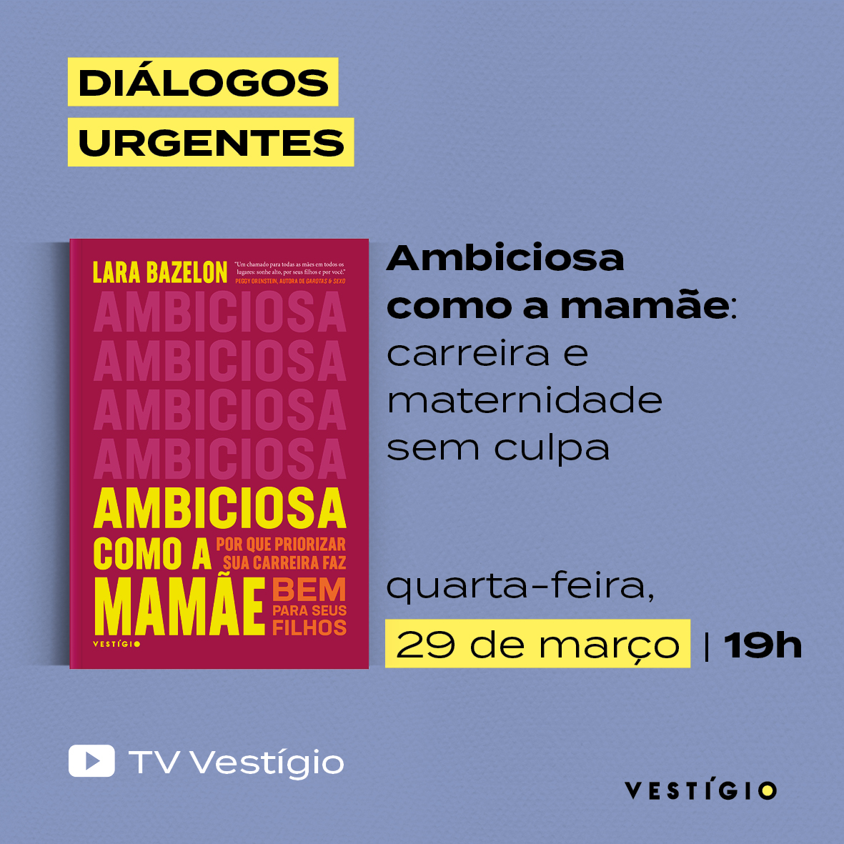 Evento online e gratuito para falar sobre carreira e maternidade, baseado no livro Ambiciosa como a mamãe.