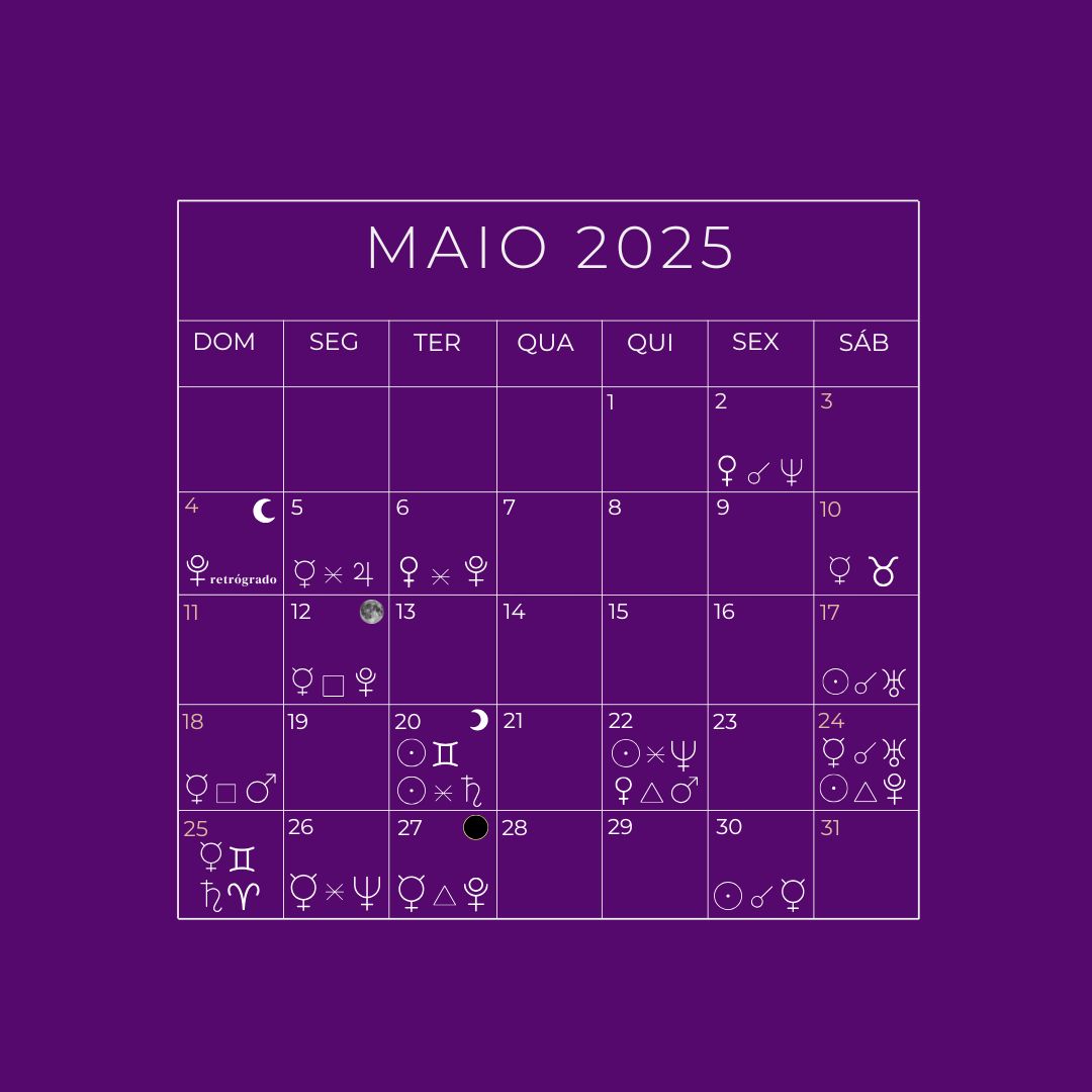 Confira também minhas previsões astrológicas para maio na minha coluna em Universa/UOL, no horóscopo geral para maio, além dos especiais com foco em AMOR e TRABALHO/DINHEIRO.