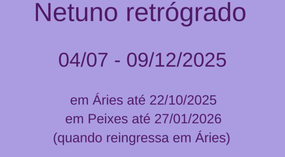 porque é preciso resgatar os sonhos antes de realizá-los Netuno fica retrógrado de 4 de julho até 09 de dezembro de 2025, sendo que dia 22 de outubro ele retorna para o signo de Peixes, onde fica novamente até dia 27 de janeiro, quando ingressa novamente e definitivamente no signo de Áries, onde ficará até … Continue lendo Netuno Retrógrado: de Áries para Peixes