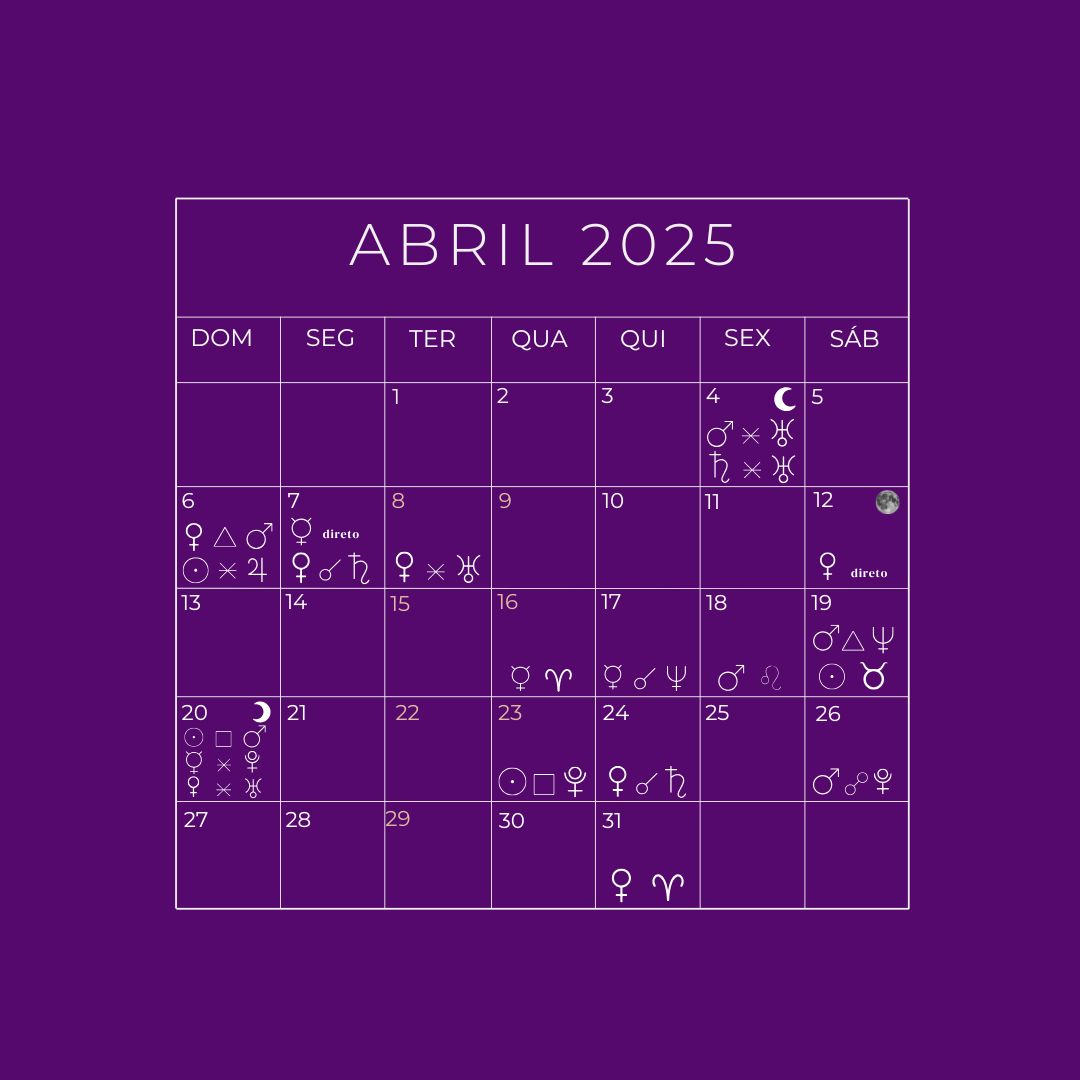 Abril também está chegando e promete ser um mês intenso, marcado por importantes aspectos astrológicos: